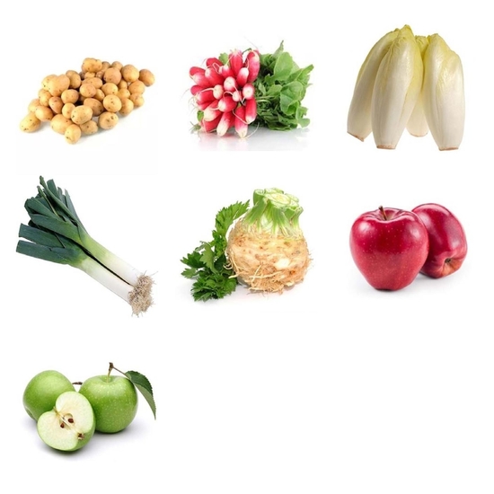 Composé de 6 à 8 variétés de fruits et légumes de saison.